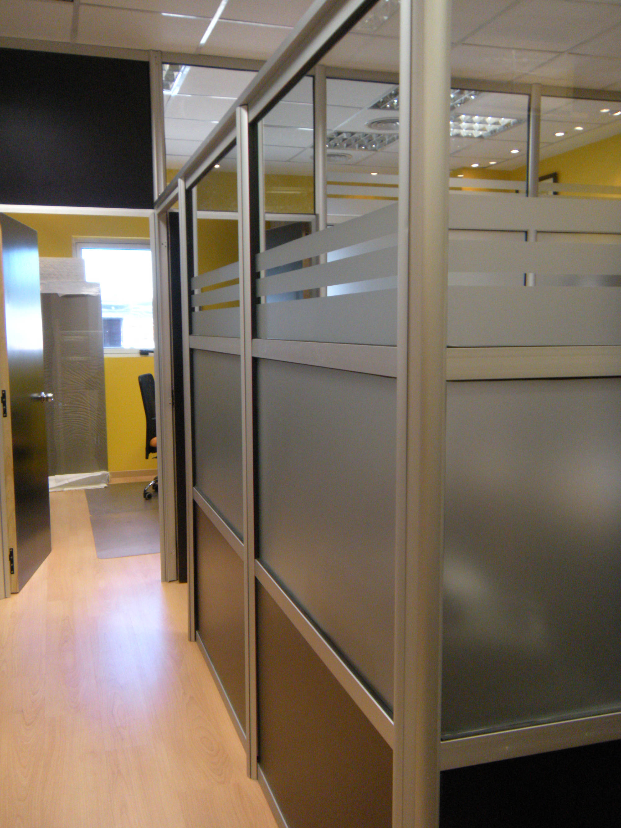 Se trata de tabiques divisores fabricados a medida con el fin de obtener el espacio laboral buscado .